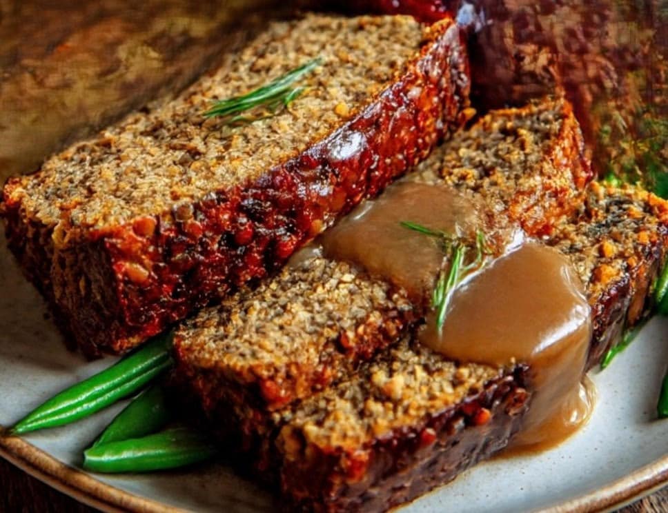 Option 3 – Lentil loaf with roasted veggies and mushroom gravy.